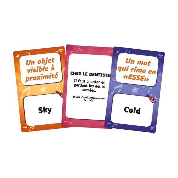 Le principe, aussi simple que génial, reste le même : formez deux équipes, tirez une carte, cherchez et chantez (même un peu faux) des extraits de chansons en rapport au mot imposé et rappelez-vous plus d’extraits que l’équipe en face ! C’est (re)parti pour des dizaines d’heures de chansons !