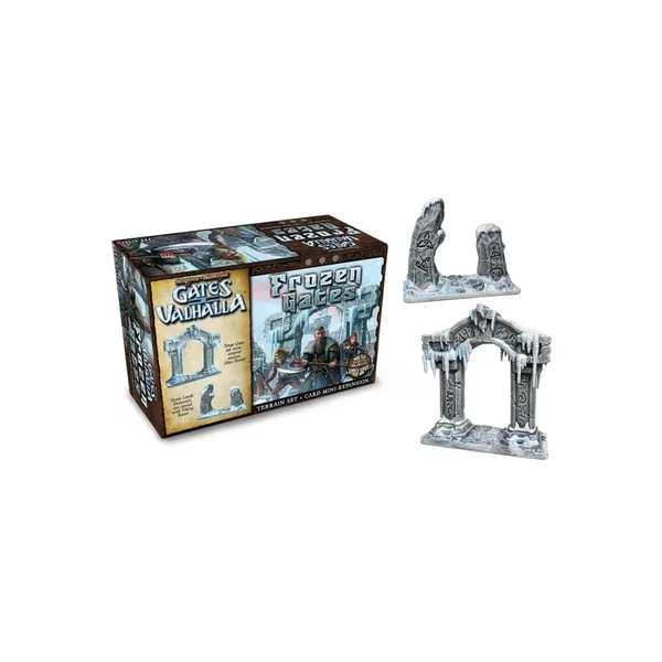 Ce set comprend 4 portes de Targa en plastique, 4 portes des Terres Nordiques, et une nouvelle mini extension exclusive de 15 cartes, ainsi que les règles et le guide de peinture.