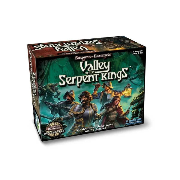 Shadows of Brimstone – Valley of the Serpent Kings Adventure Set propose également de nouveaux éléments pour Shadows of Brimstone – Swamps of Death of Jargono (présentés pour la première fois dans la boîte Shadows of Brimstone – Swamps of Death , une jungle sombre remplie d’insectes géants, de plantes carnivores et d’hommes-serpents vicieux. Les héros exploreront une nouvelle région de Jargono, la Vallée des Rois Serpents, avec de nouvelles tuiles de carte, de nouvelles rencontres, de nouveaux artefacts, de nouvelles capacités mondiales et de nouveaux ennemis à combattre, ce qui vous permettra d’explorer les Marais pour la première fois ou d’agrandir votre collection existante.