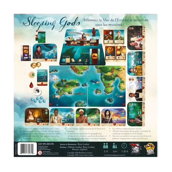 Sleeping Gods est un jeu qui se joue en campagne, chaque session peut durer aussi longtemps que vous le souhaitez. Lorsque vous êtes prêt à faire une pause, vous marquez votre progression sur une feuille de route, ce qui vous permet de revenir facilement au même endroit du jeu la prochaine fois que vous jouez. Il est d’ailleurs très facile d’échanger les joueurs à table au fil des parties. Votre objectif est de trouver au moins quatorze totems cachés dans le monde. Comme pour la lecture d’un livre, vous accomplirez ce voyage une ou deux heures à la fois, découvrant de nouvelles terres, de nouvelles histoires et de nouveaux défis en cours de route.