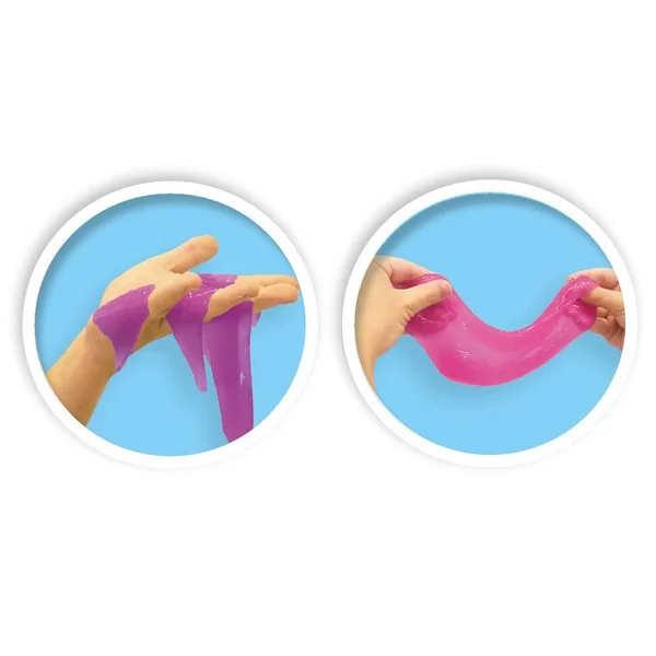 Du slime et des paillettes : le mélange parfait. Ces deux pots contiennent du slime prêt à l’emploi de différentes textures. Un pot de pâte rose épaisse, élastique et nacrée, et un autre de slime violet liquide, glissant et pailleté. Même les parents seront contents : tous les slime SES Creative s’utilisent en toute sécurité et s’éliminent facilement des tissus.