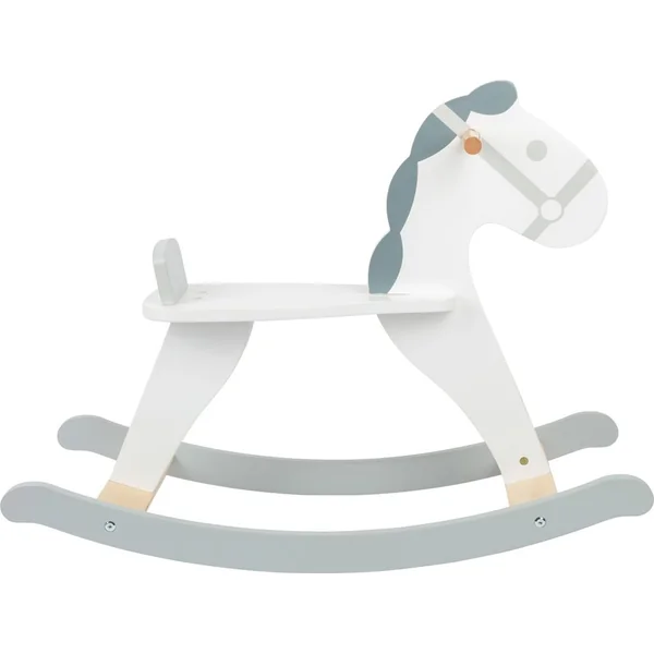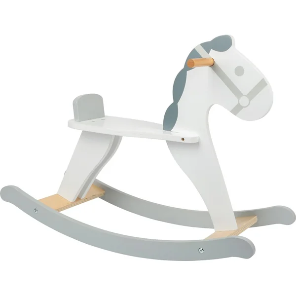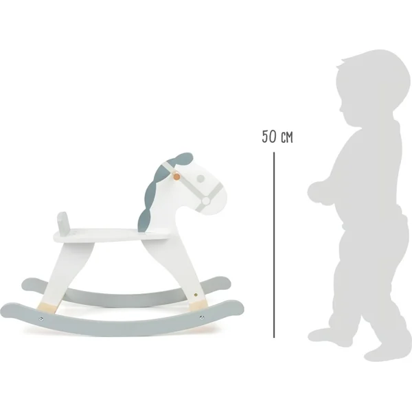 Pour plus de sécurité et un siège stable, le siège du cheval est équipé d’un dossier solide. Grâce à son design scandinave minimaliste combinant le blanc et le gris, il complétera avec goût un intérieur moderne.
