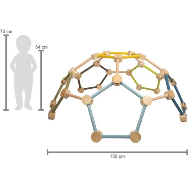 Atteignez de nouveaux sommets de manière ludique ! Ce dôme d’escalade géométrique favorise l’activité physique, entraîne l’équilibre, développe la motricité et la coordination. La combinaison parfaite de mouvement, de plaisir et de sécurité ravira chaque enfant. Le dôme est fabriqué en bois massif robuste et son design coloré s’intégrera dans n’importe quelle chambre d’enfant. Le dôme offre des possibilités de jeu infinies en tant que structure d’escalade polyvalente, cachette secrète ou lieu de jeu imaginatif. Une installation simple permet un démarrage rapide dans l’aventure de l’escalade.