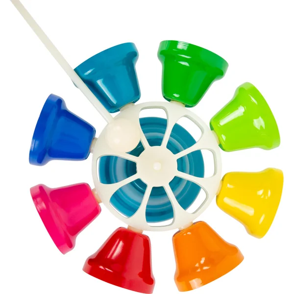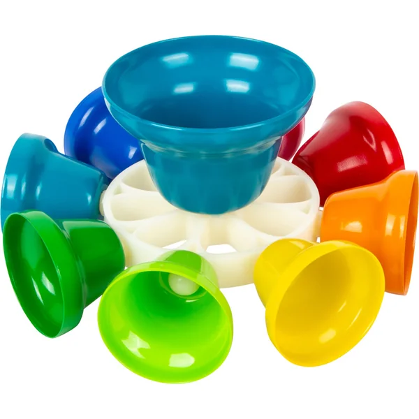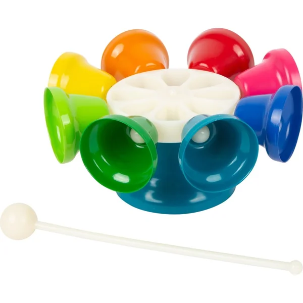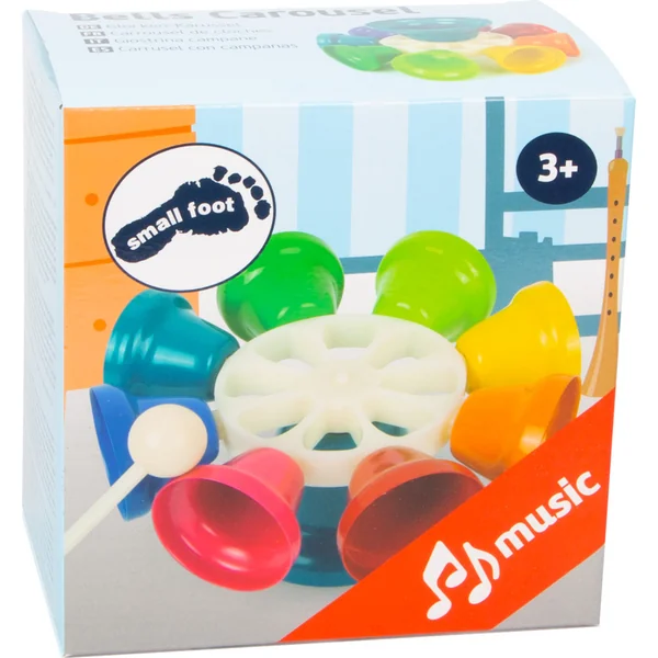 Une autre couleur, un autre son ! Ce carrousel a huit clochettes colorées, chacune accordée à une note différente – C, D, E, F, G, A, H, C.