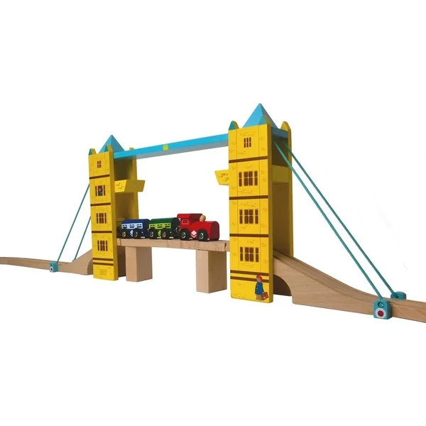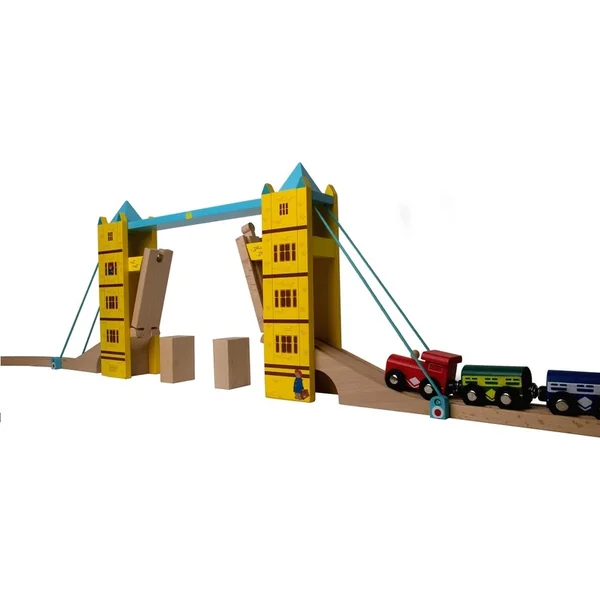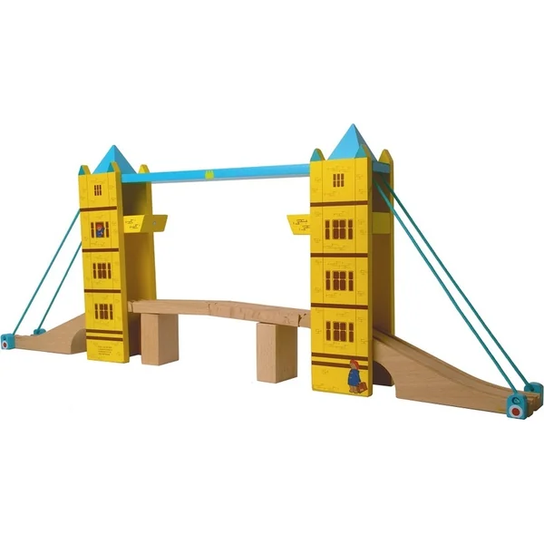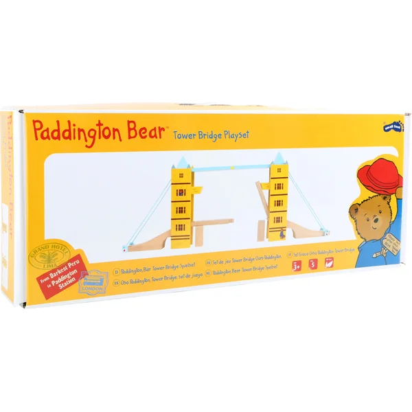Ce pont levant en bois ne doit manquer dans aucune collection de chemins de fer. Inspiré par le Tower Bridge de Londres, ce pont ravira avec sa fonction pliable et ses superbes couleurs agrémentées d’un personnage de conte, l’ours Paddington. Les rails levés sont maintenus par des aimants intégrés. Fabrication de qualité compatible avec d’autres marques de circuits de trains. Le train n’est pas inclus dans l’emballage.