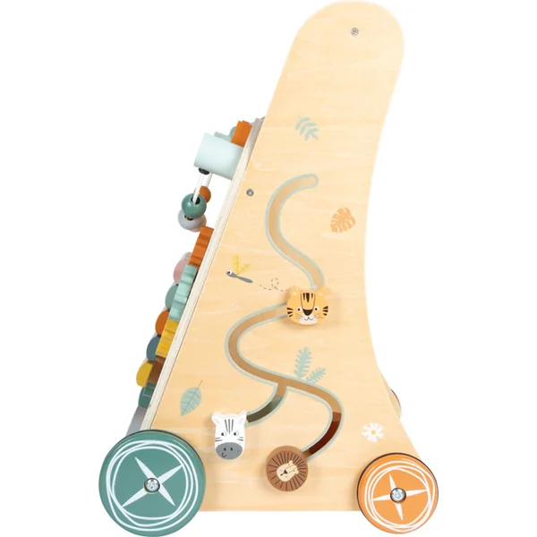 Partez en safari et explorez le monde ! Ce chariot stable avec trois murs d’activités au design safari offre une multitude d’éléments de jeu qui stimulent tous les sens et accompagnent les petits explorateurs dans leurs premiers pas. Avec un éléphant, un crocodile, un toucan, un lion, un tigre, une zèbre et leurs amis, chaque pas sera une nouvelle aventure.