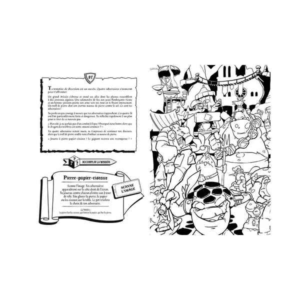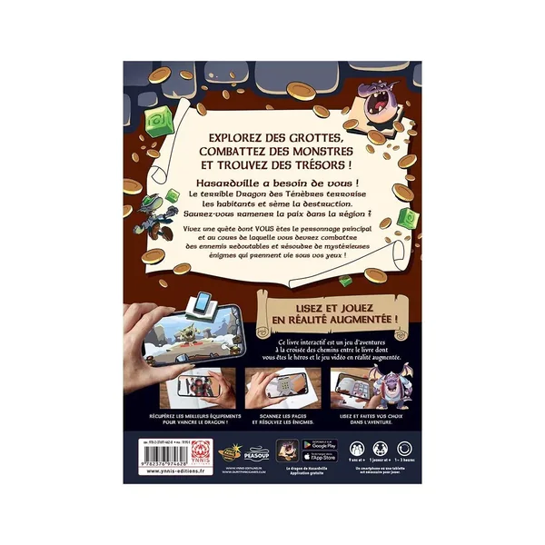 Explorez des grottes, combattez des monstres et trouvez des trésors ! Récupérez les meilleurs équipements pour vaincre le dragon ! Scannez les pages et résolvez les énigmes. Lisez et faites vos choix dans l’aventure. Un smartphone ou une tablette est nécessaire pour jouer, application Apple et Android gratuite.