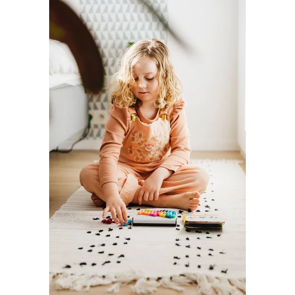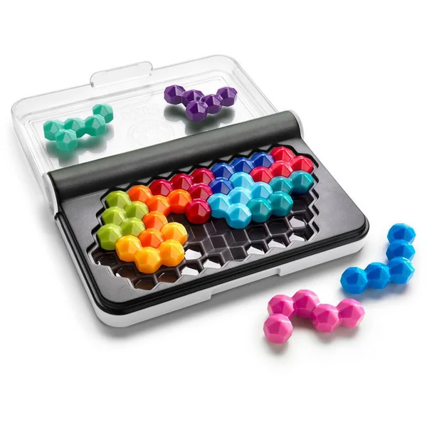 Découvrez le jeu IQ Six Pro de SmartGames, un jeu de logique et de réflexion pour les enfants dès 8 ans avec 120 défis à réaliser où vous devrez être astucieux et placer toutes les pièces sur le plateau de jeu. Ce nouvel IQ propose de jouer sur deux plateaux en 2D et de monter un tétraèdre en 3D à l’aide de pièces de formes hexagonales. Le jeu comprend un coffret de jeu avec un couvercle transparent, douze pièces de jeu de couleur et un livret de 120 défis et leur solution. Un coffret compact et léger, idéal pour les voyages et les vacances. Nombre de joueur 1 –