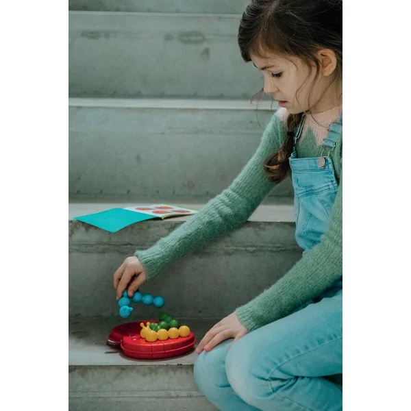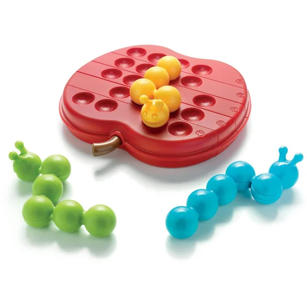 Découvrez Le festin des chenilles de Smartgames, un jeu de logique où vous devrez résoudre 60 défis, en plaçant toutes les chenilles à l’intérieur d’une belle pomme rouge. Le jeu contient un plan de jeu interchangeable en forme de pomme, 3 chenilles qui se coudent et un livret de 60 défis et leurs solutions.