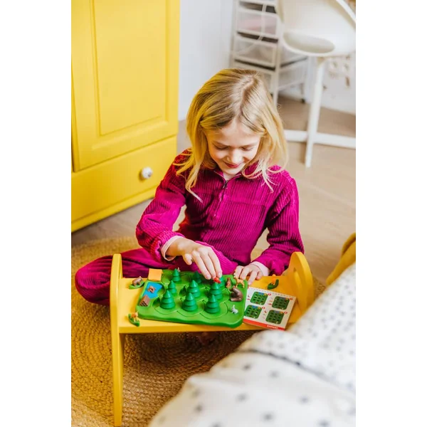 Découvrez le jeu Parc’Ours en forêt de SmartGames, un jeu de logique et de réflexion pour les enfants avec 80 défis à réaliser sur le thème de la nature. Découvrez une subtile mécanique d’engrenages pour résoudre les 80 défis évolutifs du livret, de facile à difficile. La boite de jeu contient 1 plan de jeu, 9 tuiles « Sapin » rotatives, 6 figurines, 1 livret avec 80 défis, les solutions et la règle de jeu.
