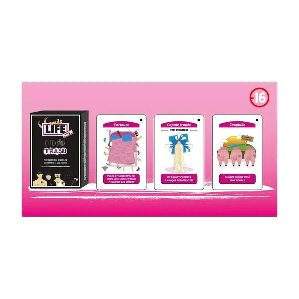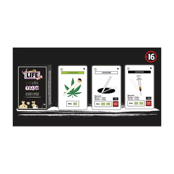 Smile Life : Trash est une extension accessible dès l’âge de 16 ans pour des parties de 45 minutes environ avec de 2 à 6 joueurs.
