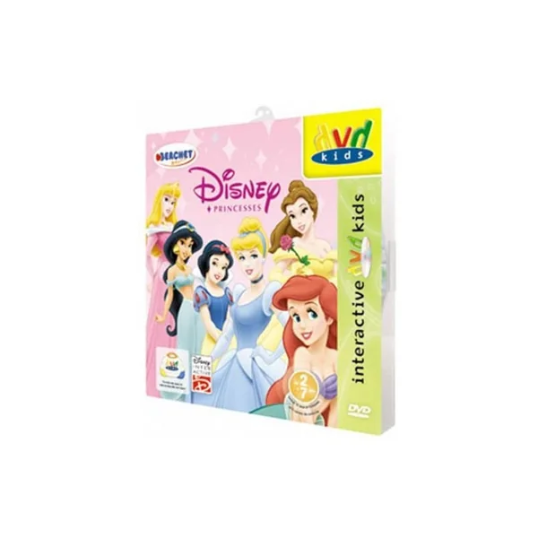 Ce DVD à utiliser avec la console DVD Kids Controller vous permettra de découvrir la vraie vie des princesses de Disney sur votre télévision! Ce DVD intéractif est spécialement crée pour les enfants. 15 jeux et histoires Disney pleins de charme pour aider à l’éveil de l’enfant. Dès 3 ans. Blanche Neige, Ariel, Cendrillon, Jasmine, Belle et la Belle au Bois Dormant t’attendent pour des heures de jeux. Avec ces jeux trés éducatifs et ludiques, entre dans le monde féérique des Princesses de Disney. Amuse toi à reconnaitre des sons, à chanter, danser, vivre des épreuves et partager pleins d’histoires.
