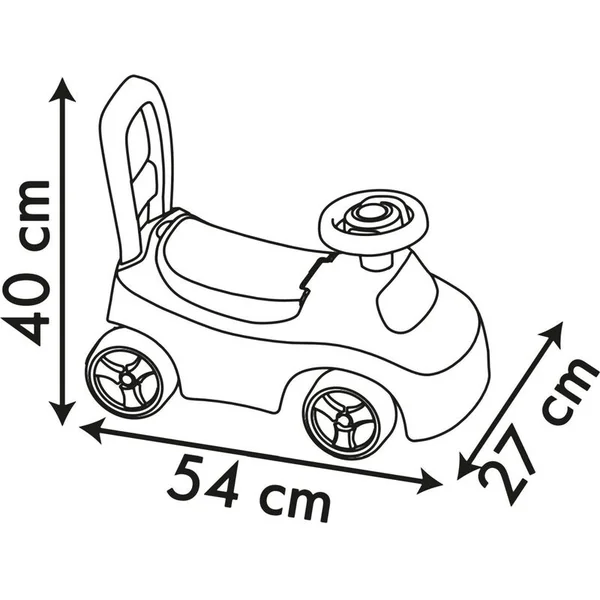Il comprend un volant, un dossier, et sous le siège rabattable, un compartiment pour les affaires essentielles du petit voyageur.