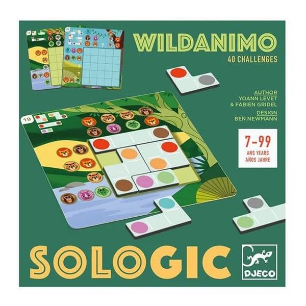 Un jeu Sologic format poche. Combien de tigres se trouvent dans la colonne ? Combien d’éléphants sur la ligne ? Sur le principe du sudoku, rendez leur territoire aux animaux sauvages.