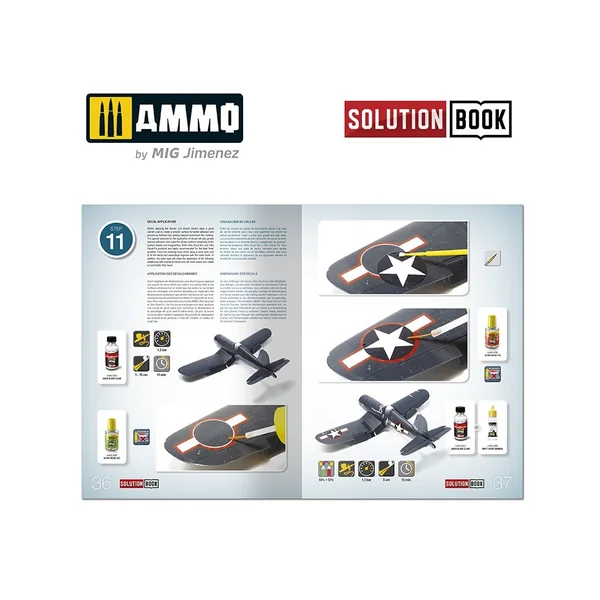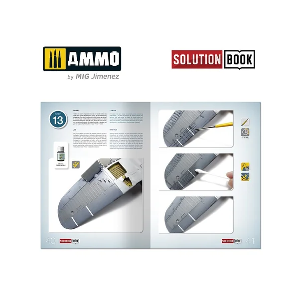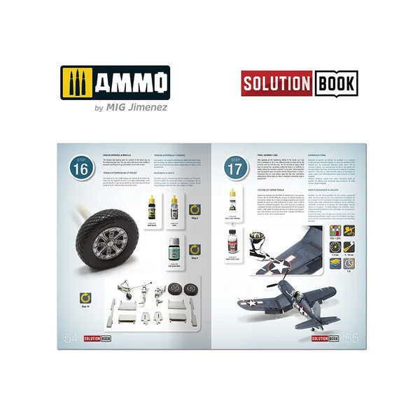 La ressource précieuse How to Paint WWII US Navy Late Aircraft Solution Book est un guide complet de 60 pages avec des tutoriels étape par étape en quatre langues (anglais, espagnol, français et allemand) qui explique comment appliquer les différentes couleurs et effets couramment observés sur les avions de l’US Navy opérant pendant les dernières phases de la guerre.