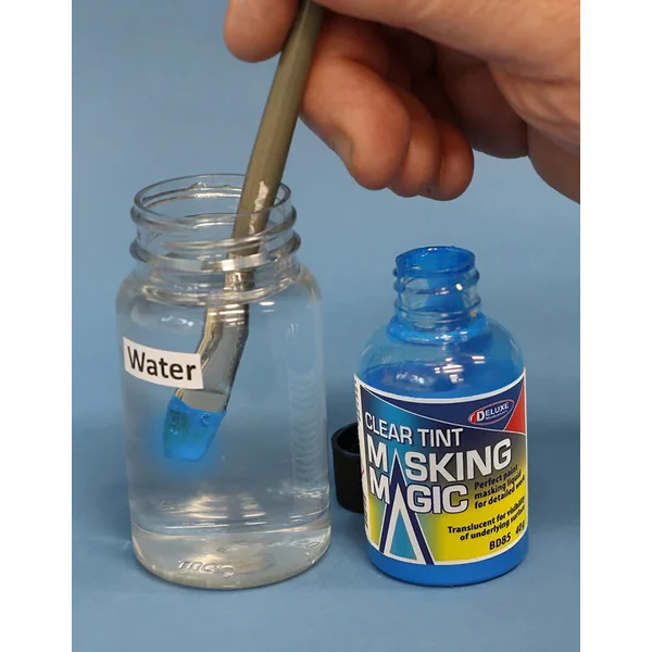 Masking Magic est une solution de masquage transparente pour un masquage facile et précis des parties sélectionnées des modèles avant la peinture. Spécialement développée pour les modèles en plastique. Elle crée un film de revêtement fin et non adhésif malgré des contours complexes. Une fois peint, elle se retire facilement. Vous pouvez utiliser des peintures synthétiques ou acryliques. La solution séchée peut être découpée pour créer des bords nets. Après application, les pinceaux se nettoient facilement à l’eau chaude. Si nécessaire, elle peut être diluée à l’eau.
