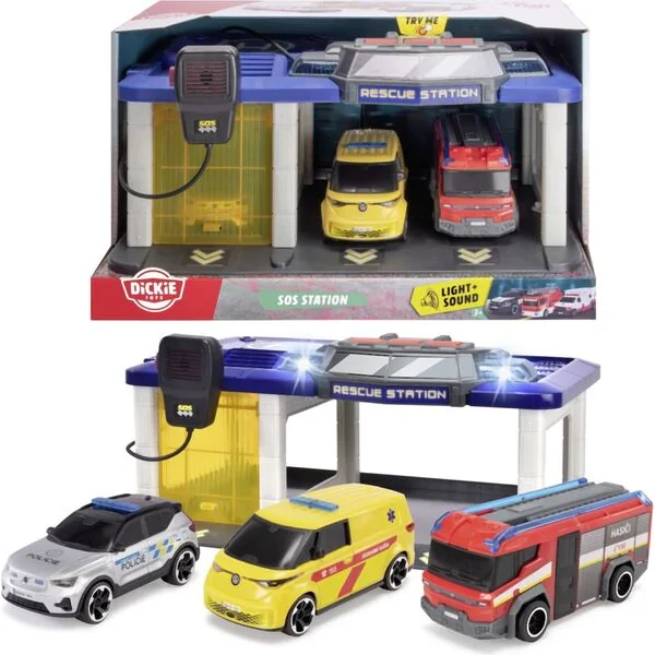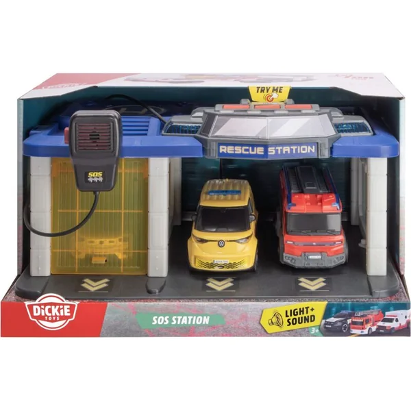 Station de secours SOS avec lumière, son, microphone fonctionnel et portes ouvrantes.