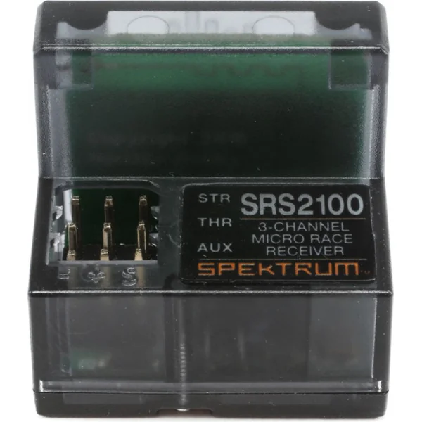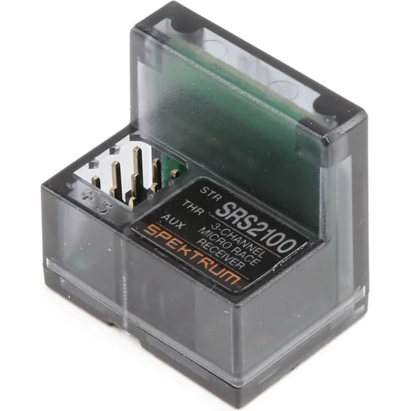 Récepteur micro 3 canaux Spektrum SR2100 DSMR® pour les plus exigeants. Antenne intégrée, fréquence de rafraîchissement super rapide de 5,5 ms DSMR. L’appairage avec les émetteurs RC Spektrum est facile grâce au bouton de liaison intégré. Revêtement Reliakote contre l’humidité.
