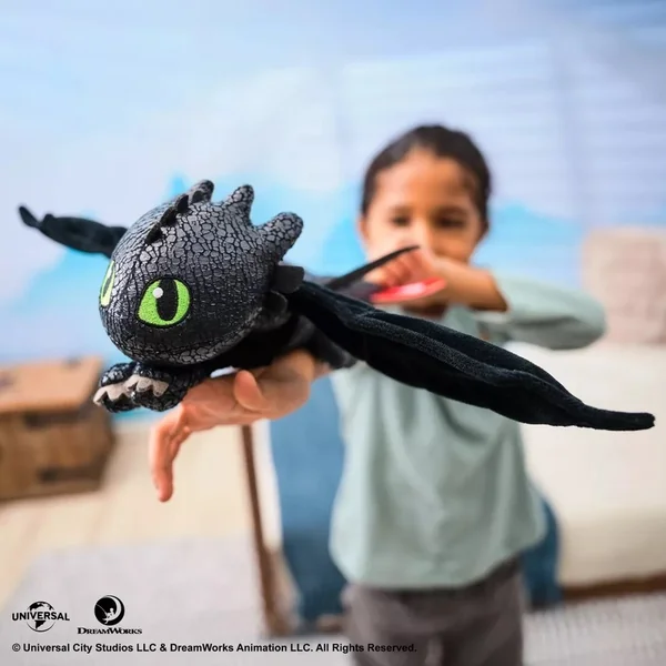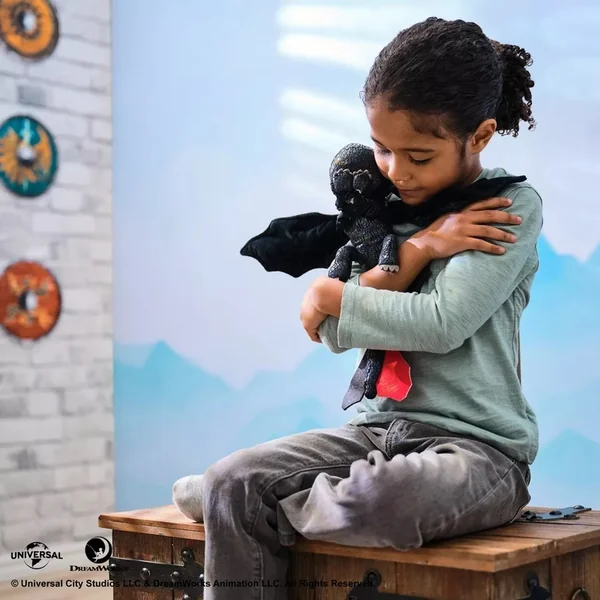 Ses ailes douces se replient ensuite avec un clic et vous enveloppent agréablement lorsque vient le temps de câliner. Que ce soit pour un anniversaire, une fête ou toute autre célébration, ce mignon dragon en peluche est un cadeau impressionnant pour les fans du film Dragons et pour tous ceux qui aiment les films familiaux.