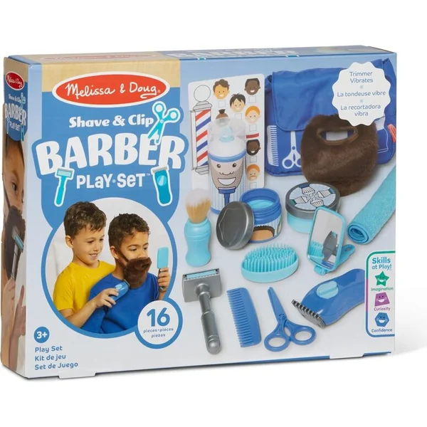 Avec cet ensemble richement équipé, les enfants à partir de 3 ans peuvent ouvrir leur propre salon de coiffure et offrir aux clients des soins complets. Que ce soit pour le rasage, la taille de la barbe ou le contouring, grâce aux accessoires réalistes, les enfants se sentent comme de véritables coiffeurs et barbiers pendant le jeu.