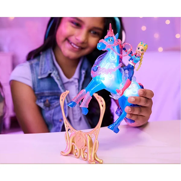 Ce set, inspiré de la série animée populaire et du best-seller, comprend la poupée exclusive Isabel et le unique licorne translucide River avec des effets lumineux.