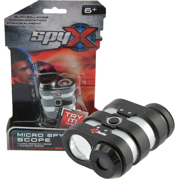 SPY X équipement SPY X équipement contient tout ce dont chaque petit espion a besoin pour ses missions secrètes ! Avec ce micro appareil d’observation, vous pourrez voir même dans l’obscurité totale jusqu’à une distance de 7,6 mètres.