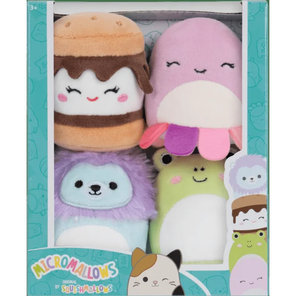 SQUISHMALLOWS Micromallows 4Pack – Grenouille, Pieuvre, Lion, S’more