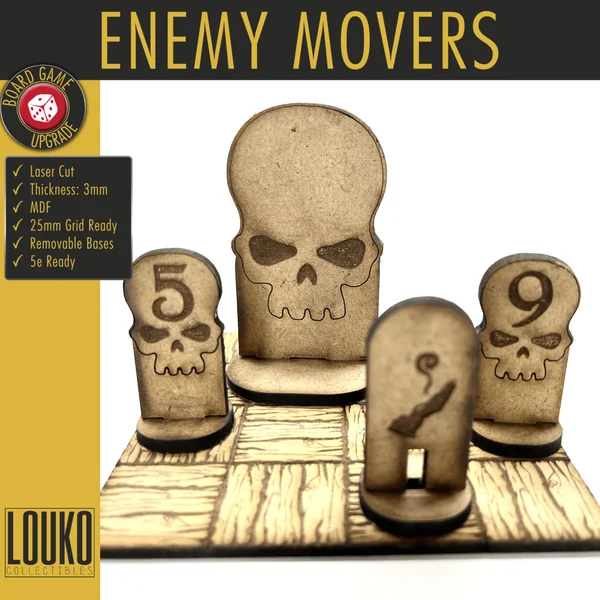 Un set de 10 standees d’ennemis, numérotés et prêts à en découdre ! Les numéros aideront le Maître de Donjon ou le Maître de Jeu à distinguer, compter les points de vie et les statistiques de chaque ennemi.