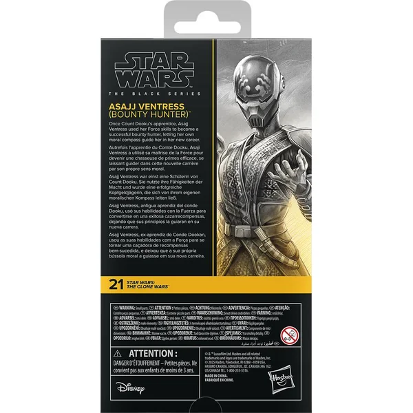 La gamme Star Wars The Black Series inclut des figurines de 15 cm, des véhicules et des articles de cosplay inspirés de plus de 40 ans de la galaxie Star Wars permettant de créer des scènes fidèles aux BD, aux films, aux séries et aux dessins animés Star Wars. Cette figurine Hasbro Star Wars réaliste ressemble à Asajj Ventress de Star Wars: The Clone Wars. Avec leur design premium, les articles The Black Series répondent aux attentes des fans de Star Wars en matière de qualité et de réalisme. Que la Force soit avec vous ! (Autres produits vendus séparément, dans la limite des stocks.) Les produits Star Wars sont produits par Hasbro avec l’autorisation de Lucasfilm Ltd. HASBRO et tous les logos et marques associés sont des marques de commerce de Hasbro, Inc.