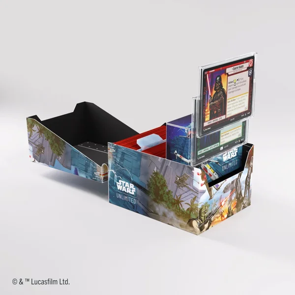 Disponible en deux designs spectaculaires, le Soft Crate TWIN SUNS est un accessoire indispensable pour tous les joueurs de Star Wars: Unlimited, ainsi que pour les passionnés de la saga !