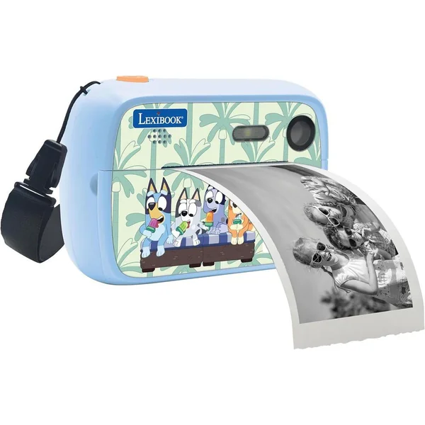 Appareil photo numérique HD Bluey à impression instantanée pour les selfies et la photographie avec une carte SD incluse. Équipé de fonctions photo, vidéo et musique. Doté de 2 véritables capteurs de 1,3 MP pour les objectifs avant et arrière, l’appareil vous permet d’extrapoler la définition de l’image jusqu’à 48 MP et d’imprimer des posters en utilisant soit la caméra avant, soit la caméra arrière. Il suffit d’appuyer sur le bouton pour obtenir une photo imprimée en noir et blanc en une seconde !