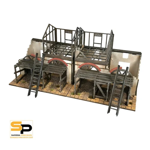 Recréez l’ambiance d’une ville romaine en pleine rénovation avec ce décor évocateur. Échelles, échafaudages et structures inachevées apportent une variété dynamique à vos maquettes urbaines. Que vous jouiez à Gangs of Rome ou à un autre jeu d’escarmouche urbain, ce décor vous permettra de créer des moments stratégiques et narratifs dans chaque recoin.