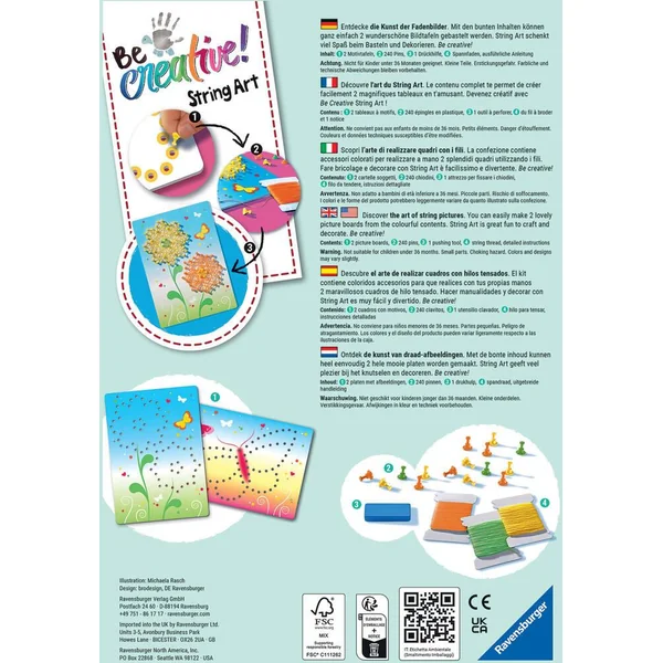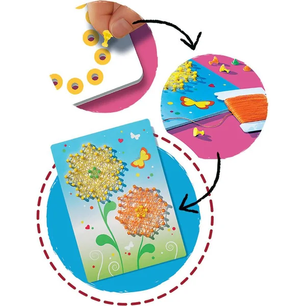 Avec String Art, c’est facile, beau et ludique de réaliser soi-même des tableaux en fil tendu. Choisis la couleur de tes fils et entrelace-les dans le sens que tu veux. Chaque coffret contient 2 tableaux à réaliser (15 x 21 cm). Parmi les 6 visuels, ce papillon et ses fleurs tissés sauront décorer une pièce à merveille ! Contenu : 2 tableaux (15 x 21 cm), 240 épingles en plastique, 1 aide à perforer, fil tendeur et 1 guide d’utilisation. Ce produit est composé de matériaux issus de forêts bien gérées certifiées FSC®, de matériaux recyclés et de matériaux issus d’autres sources contrôlées (FSC-C111262).