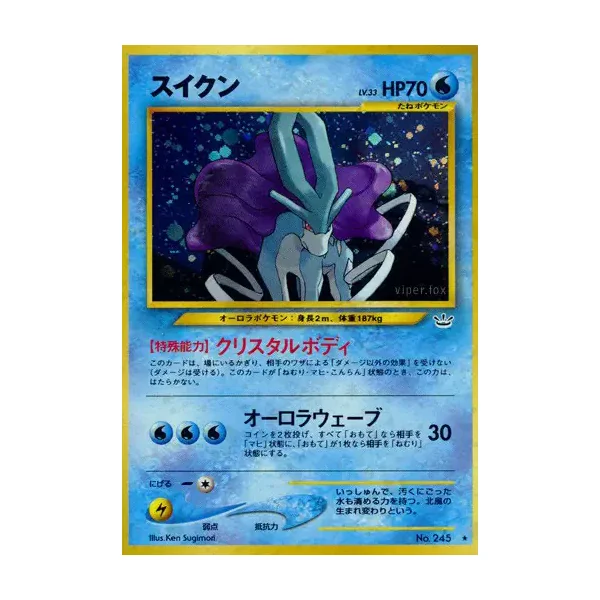 Découvrez Suicune (n3000), une carte Pokémon de l’extension Awakening Legends, provenant du bloc Neo Era. Idéale pour compléter votre collection, cette carte Holo Rare plaira autant aux collectionneurs qu’aux joueurs.
