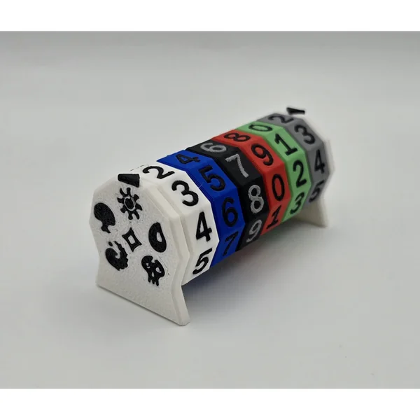Suivez votre mana pendant les jeux de cartes comme Magic: The Gathering avec ce tracker imprimé en 3D. Disponible en six couleurs (blanc, bleu, noir, rouge, vert et incolore), il suit le mana de 0-9 ou 0-99 par couleur.
