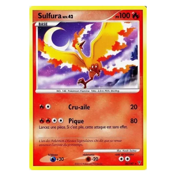 Découvrez Sulfura (sv036), une carte Pokémon de l’extension Vainqueurs Suprêmes, provenant du bloc Platine. Idéale pour compléter votre collection, cette carte Rare plaira autant aux collectionneurs qu’aux joueurs.