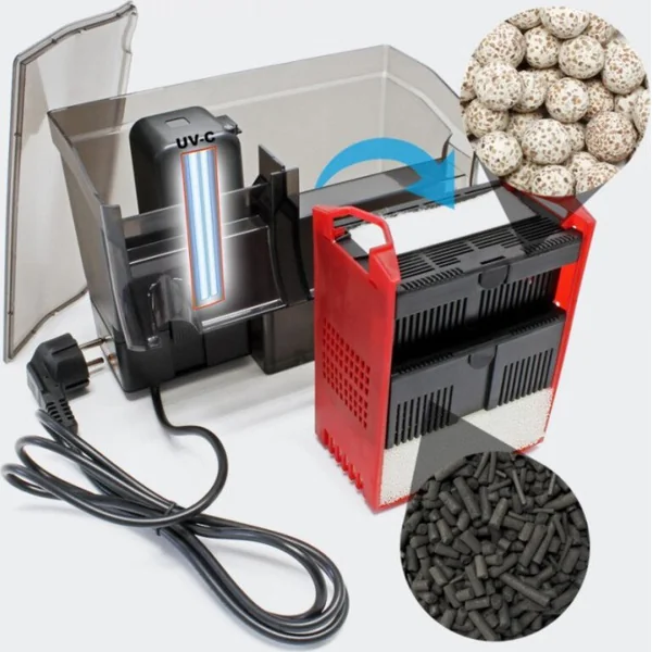 Le filtre suspendu SUNSUN CBG-800 est idéal pour les petits aquariums où il n’y a pas assez d’espace pour un filtre interne, qui prend beaucoup de place dans l’aquarium. Ce filtre suspendu peut être utilisé pour des aquariums d’un volume de 75 à 90 litres. La puissance de la pompe est de 800 l/h.