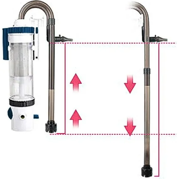 Le tube d’aspiration peut être ajusté en hauteur selon les besoins, permettant au filtre de fonctionner de manière fiable dès un niveau de 5 cm – idéal également pour les réservoirs peu profonds ou les terrariums avec une surface d’eau.