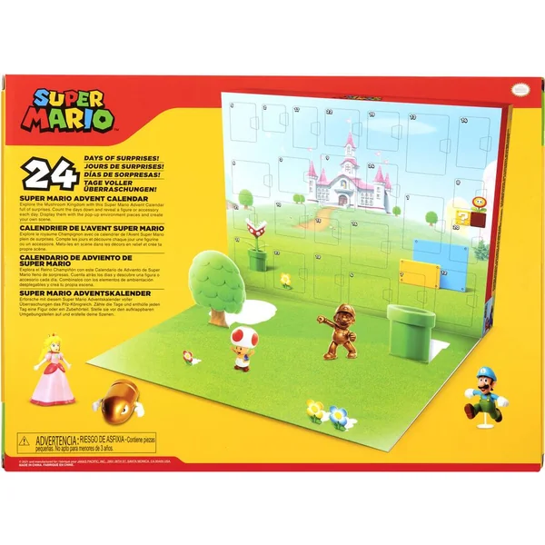 24 jours de surprises ! Explore le Royaume Champignon avec ce calendrier de l’Avent Super Mario plein de surprises. Compte les jours et découvre chaque jour une figurine ou un accessoire. Mets-les en scène dans les décors en relief et crée ta propre scène. Instructions imprimées sur la boîte.