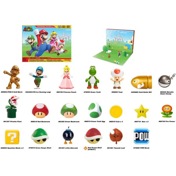 Le petit va explorer le Royaume Champignon avec ses 24 cadeaux surprises dissimulés dans les cases de ce calendrier de l’Avent Super Mario. Chaque jour, il découvre une nouvelle figurine ou un accessoire, pour finir avec 17 figurines articulées et 7 accessoires au total.