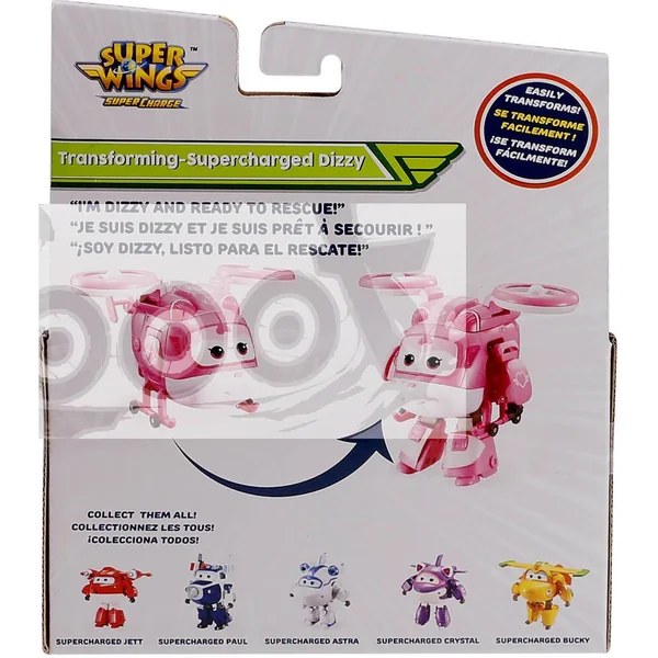 Recrée chez toi les missions de tes héros Super Wings avec les figurines Transforming Super Charge issues de la Saison 4 de la Série TV ! Figurine de 12 cm de haut Transformable et Articulée. En 10 gestes simples la figurine se transforme de véhicule (avion/hélico) en robot, comme dans la série TV.