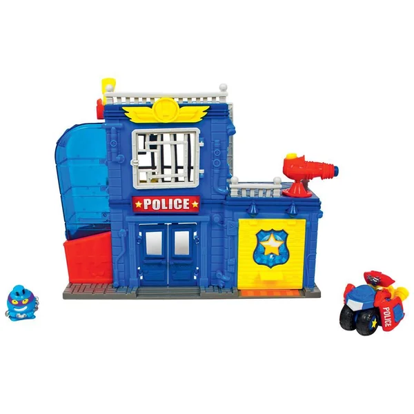 Surveille les rues de Kaboom City grâce au poste de police avec son canon, son piège et son passage secret ! Contient 2 figurines et 1 véhicule à roues libres. Modèle des figurines selon disponibilité.