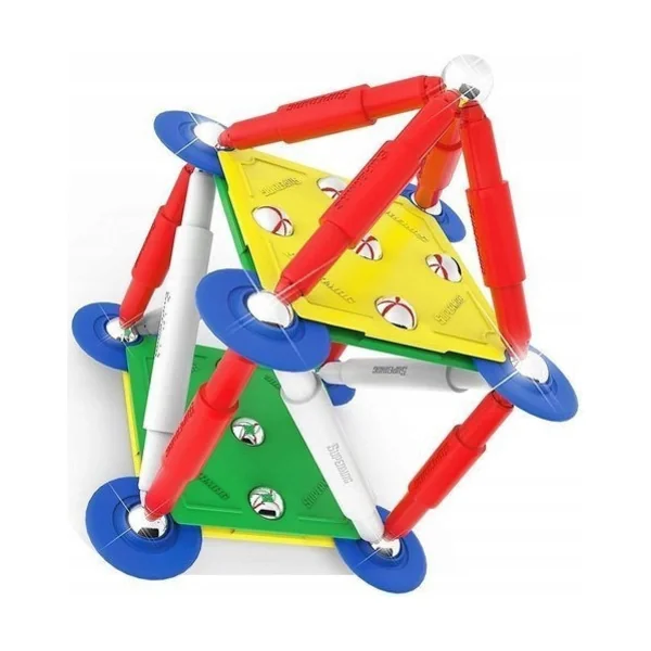 - 1. Composants de base : Contient des pièces de base telles que des barres magnétiques (rods) et des billes métalliques (balls), permettant aux enfants de créer des structures spatiales (réseau) dans des couleurs de base (Primary).