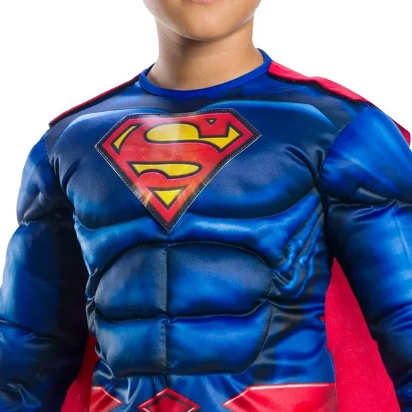 Procurez-vous ce costume qui comprend une combinaison avec une poitrine musclée et une cape pour devenir Superman.