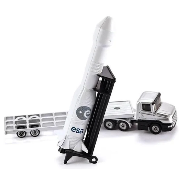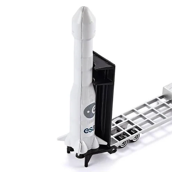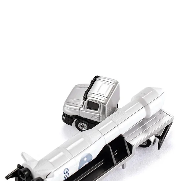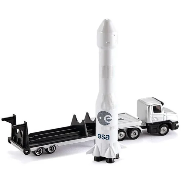 Camion plat transporant une fusée.