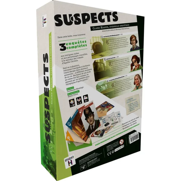 Dans cette seconde boite de Suspects, retrouvez l’intrépide et brillante Claire Harper à différents moments de sa vie… mais toujours poursuivie par le mystère. En 1921 alors qu’elle fréquente les bancs de son école à Nottingham dans «Les larmes de Shakespeare». En 1948, lors du premier grand évènement d’après-guerre : les Jeux Olympiques de Londres dans « Mort à l’arrivée ». En 1971, dans «Le Mystère de la dame du lac» alors que Claire goûte au calme de la Suisse pour écrire ses mémoires…