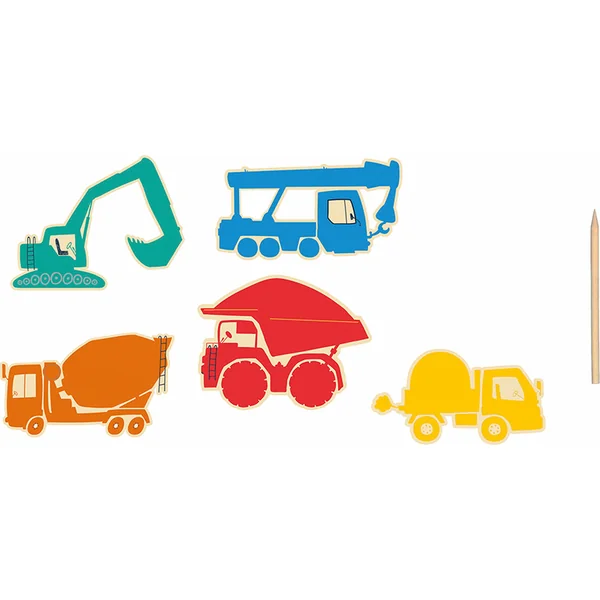 Que diriez-vous si le dessin était un peu comme de la magie ? Un grattage préféré cette fois-ci un peu différemment. Les enfants complètent 5 véhicules de construction en grattant la couleur supérieure.