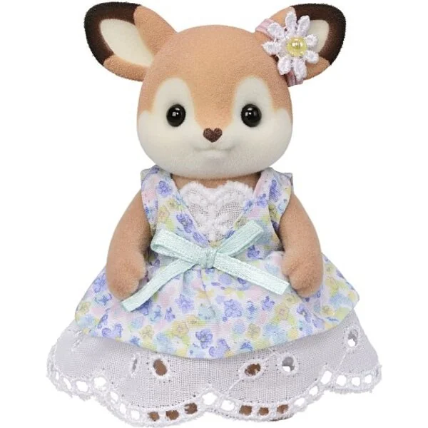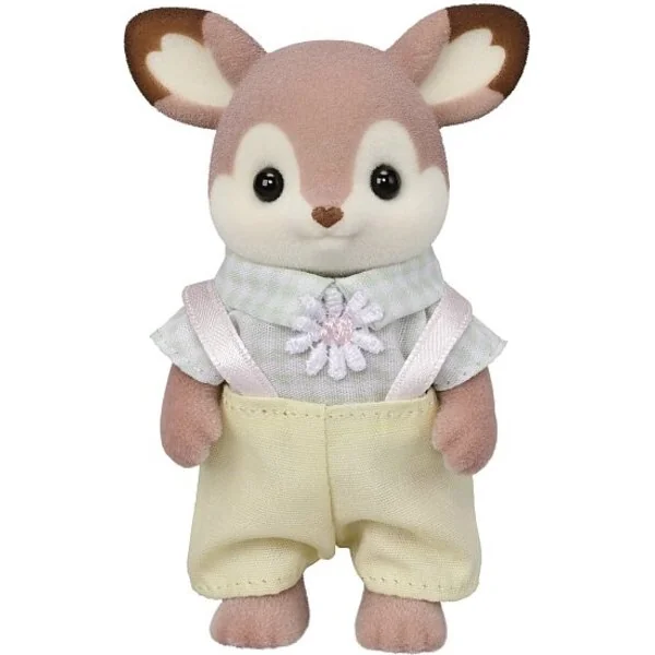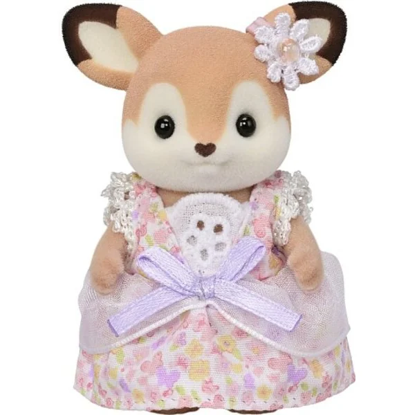 La famille des cerfs a de mignonnes oreilles caractéristiques. La figurine du bébé peut être placée dans un porte-bébé en forme de fleur pour être emportée partout.