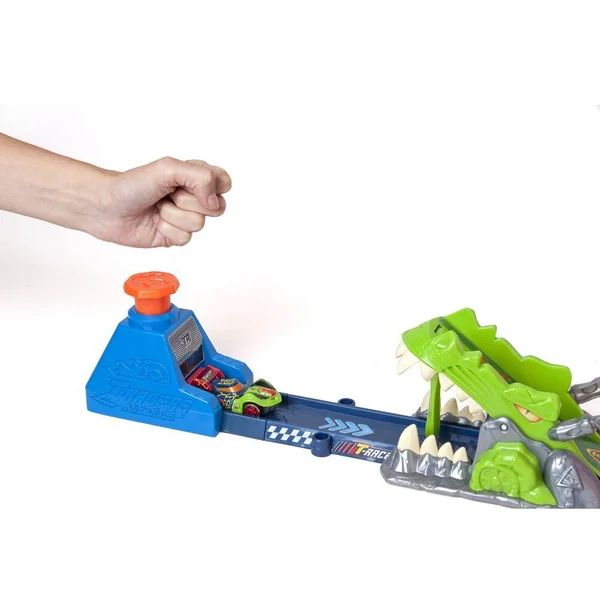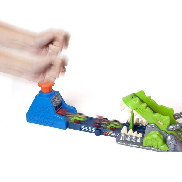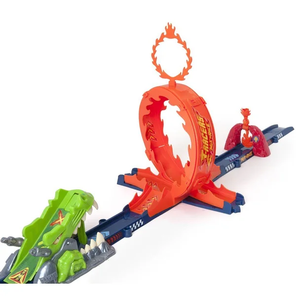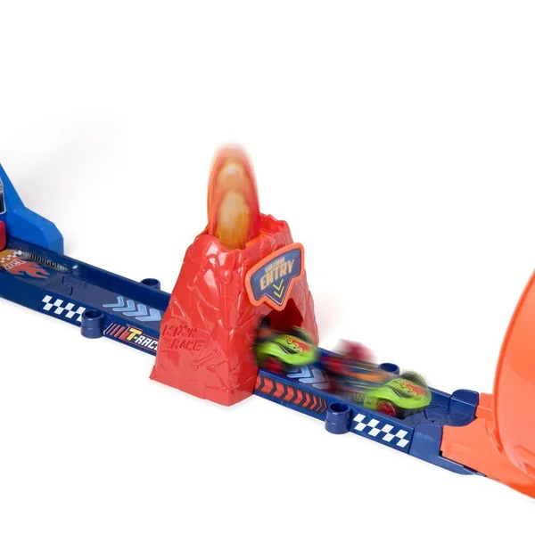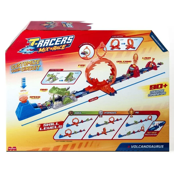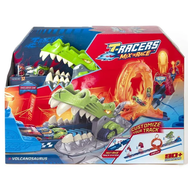 As-tu entendu ce rugissement ? C’est le Volcanosaure des T-Racers ! Le défi ultime où tu devras affronter un volcan et un dinosaure à l’aide de ton véhicule T-Racers, le tout à toute vitesse ! Vas-tu relever le défi ?