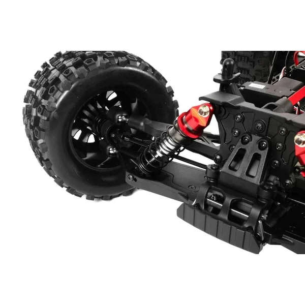 La transmission intégrale, entièrement supportée par des roulements à billes, promet une répartition efficace de la puissance et une excellente maniabilité. Doté de différentiels avant et arrière à pignons sous carters étanches, le truggy garantit une robustesse et une fiabilité même dans les conditions les plus extrêmes. Sa suspension à quatre roues indépendantes, combinée aux amortisseurs hydrauliques en aluminium avec réglage de précontrainte, assure une absorption optimale des irrégularités du terrain.